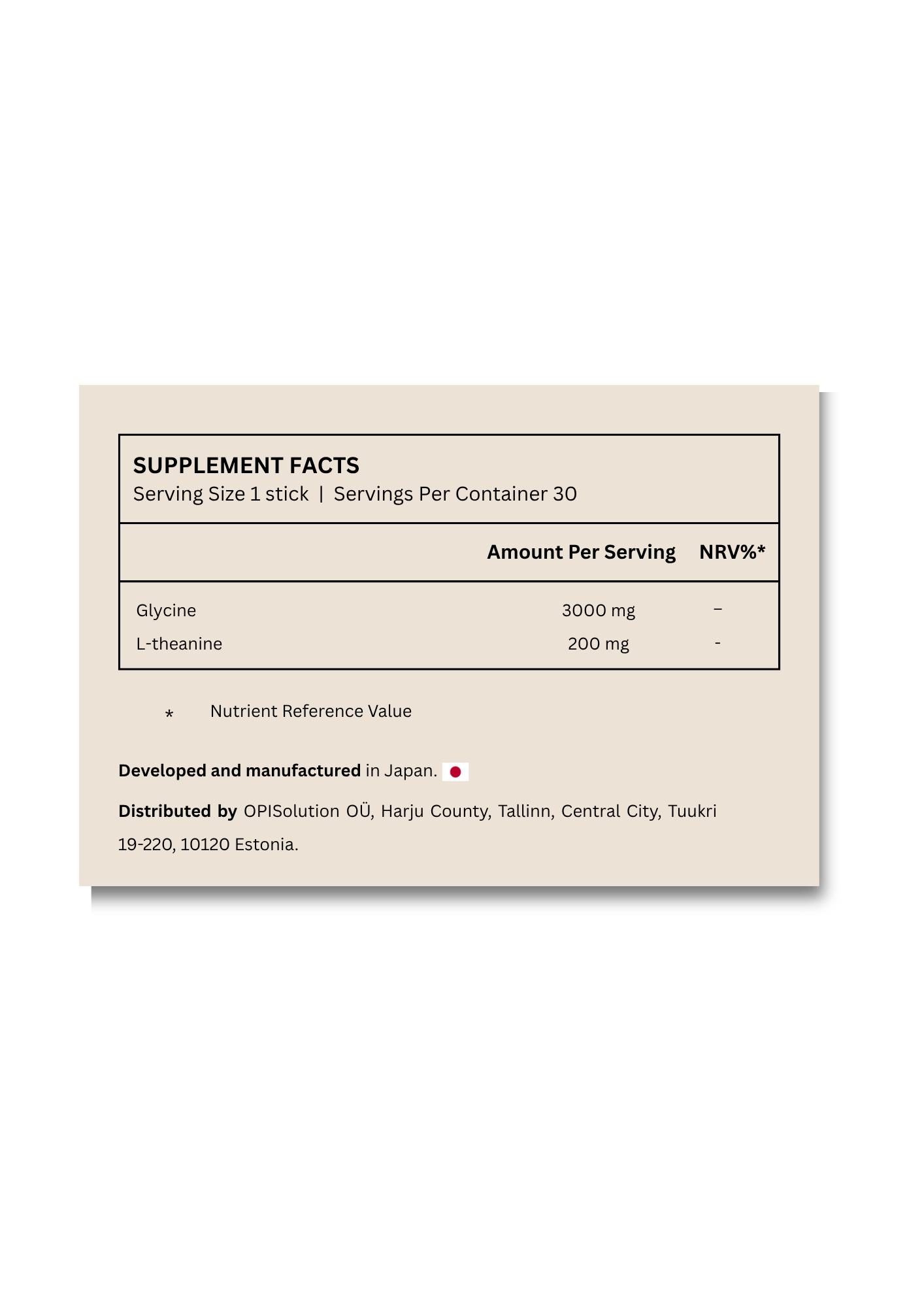 | Ingredient | Amount per serving (3.3 g) | NRV%* |